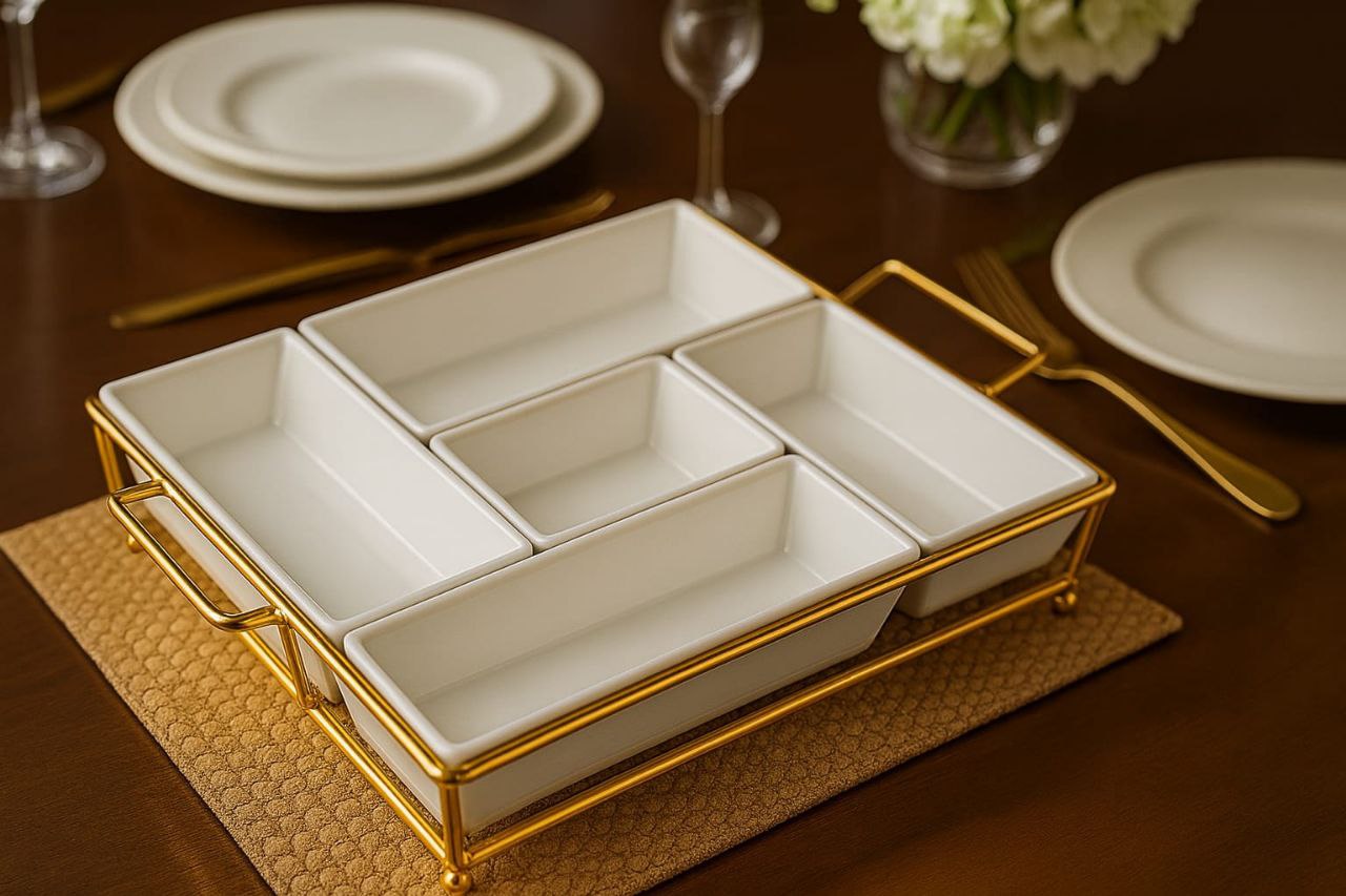 أطباق تقديم سيراميك مع حامل استانلس ذهبي✨✨
